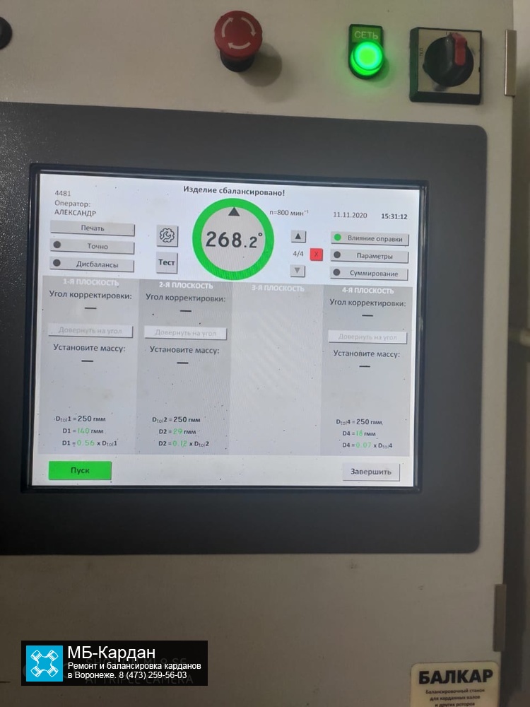 Балансировка 2-х опорного карданного вала3000