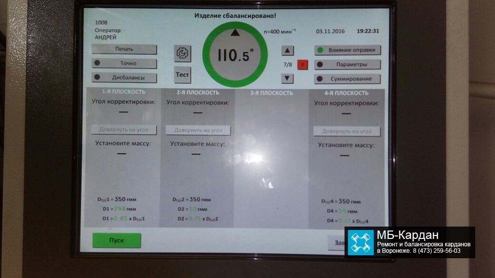 • Балансировка карданов до 7 метров